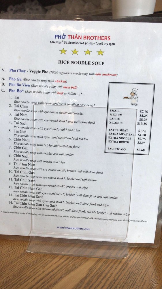 Located in the heart of Fremont, Pho Than Brothers Seattle specializes in authentic Vietnamese pho, offering a delightful experience for noodle soup lovers. Their extensive menu features a variety of pho options, including the rich and aromatic Pho Bo, which boasts tender cuts of eye-round steak, brisket, flank, and more. Each bowl is crafted with a flavorful broth that warms the soul, making it perfect for chilly Seattle days.
